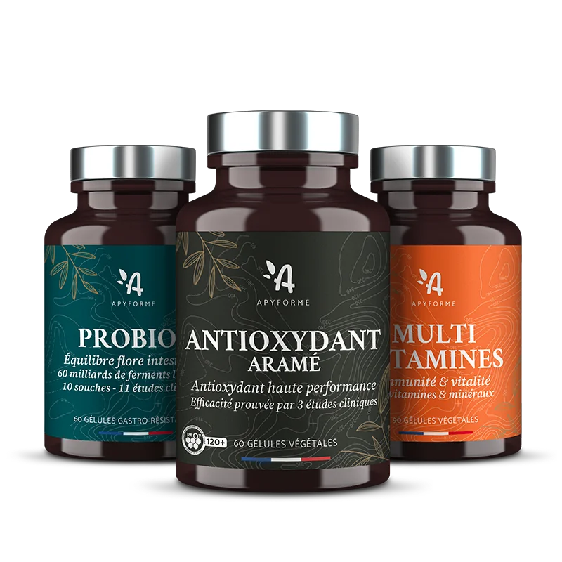Pour éviter au maximum les effets indésirables d’une cure de probiotiques, choisissez soigneusement les produits que vous consommez. Les compléments alimentaires Apyforme se composent de ferments lactiques cultivés en France. De qualité supérieure, ils sont 100 % français, y compris leur emballage. Minutieusement élaborés, ils renferment des micro-organismes vivants qui ont prouvé leur innocuité pour la santé comme pour l’environnement.