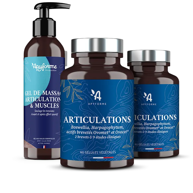 • Les compléments alimentaires comme les gélules Articulations d’Apyforme soutiennent l’élasticité des tendons et soulagent les douleurs.
