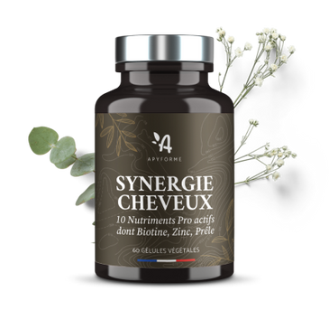 Un concentré de Nature au service de la beauté !??100 % Naturel : c'est très important pour moi?? 60 gélules??2 gélules par jour apprendre avec un grand verre d'eau au cours d'un repas?? 1 mois de traitement, à renouveler pour des cheveux beaux et sains !À chaque nouvelle saison ou bien lorsque je sens que subis quelques troubles hormonaux en raison de ma ménopause je commence à voir mes cheveux longs tomber et cela me désespère ! ( d'autant que j'ai les cheveux longs)...Je n'hésite pas à prendre un traitement de biotine durant quelques semaines, et cela me réussit totalement ??BIOTINE Plus de chez APYFORME est totalement Naturel, Fabriqué en France ????, et cela me donne pleine confiance !?? C'est un Traitement complet avec plein de vitamines, de l'extrait de goyave, de la spiruline de la chlorelle, levure de bière, mangue ??, citron ?? basilic, de la vitamine B1 B2 B3 B5 B6 B8 B9 B12!Je me sens en pleine forme et ma peau reste souple et jolie.Cette cure couvre totalement les besoins en Biotine puisqu'elle est associée avec beaucoup de vitamines qui intensifient l'action de la biotine. C'est vraiment une formule complète et qui est parfaite pour garder une belle peau, des ongles cheveux forts et résistants et une jolie chevelure.Mon compagnon qui a également tendance à perdre ses cheveux a commencé la cure avec moi.Les gélules sont faciles à avaler.??La biotine à le pouvoir d'améliorer la structure de la kératine, composant majeur du cheveu, grâce auquel ces derniers se retrouvent fortifiés.?? Toutes ces vitamines aident à améliorer l'état général de la peau et ça aide aussi à lutter contre le vieillissement de ma peau en hydratant la peau en profondeur et en la protégeant de l'oxydation cellulaire.Cette cure d'extrait de plantes, d'algues et de levure source de vitamines est tout à fait complète et je vais la prolonger d'un mois supplémentaire.
